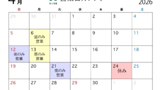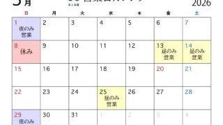 営業日カレンダー 蒸士茶楼 令和8年3月度 営業日カレンダー